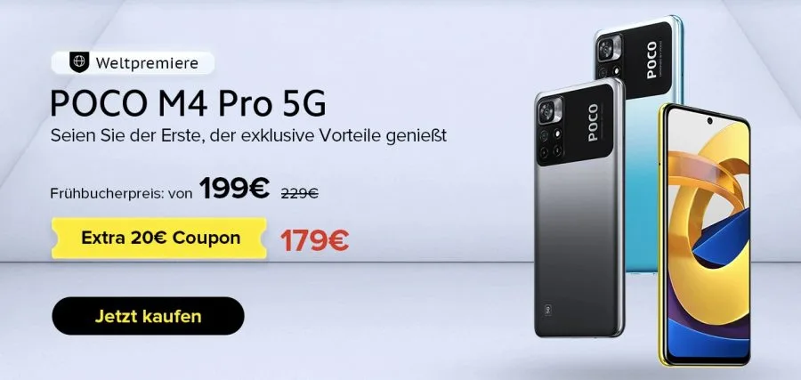 POCO M4 Pro je nový levný smartphone od dceřiné značky Xiaomi „POCO“. Téměř identický s řadou Redmi Note 11, která byla také nedávno představena v Číně, POCO M4 Pro nabízí čip MediaTek Dimensity 810, který podporuje rychlou mobilní komunikaci 5G a nabízí dostatečný výkon v aplikacích a hrách. Pokud jde o paměť, smartphone je k dispozici buď se 4 GB nebo 6 GB RAM nebo 64 GB nebo 128 GB datového úložiště. V obou variantách lze paměť rozšířit pomocí paměťové karty microSD.